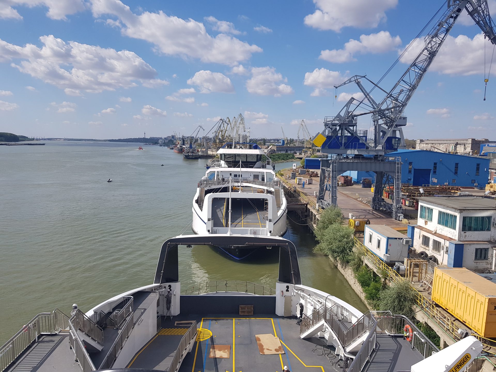 The trials starts at Damen Shipyards in Galați, Romania, by sailing down the Danube River to the Black Sea. Due to the number of people on board and the lack of cabins, we stayed overnight in Constanța port during the trial period.