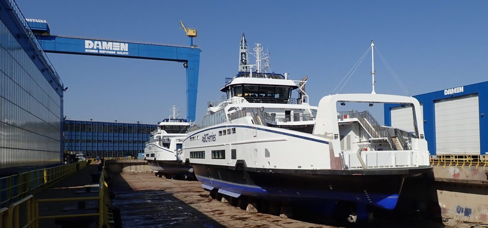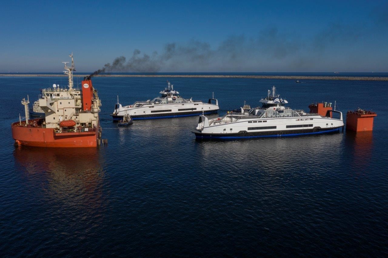 These Damen Road Ferry 8117 vessels are hybrid-powered and can operate for up to one hour fully electric on battery power—a major innovation in sustainable marine transport.